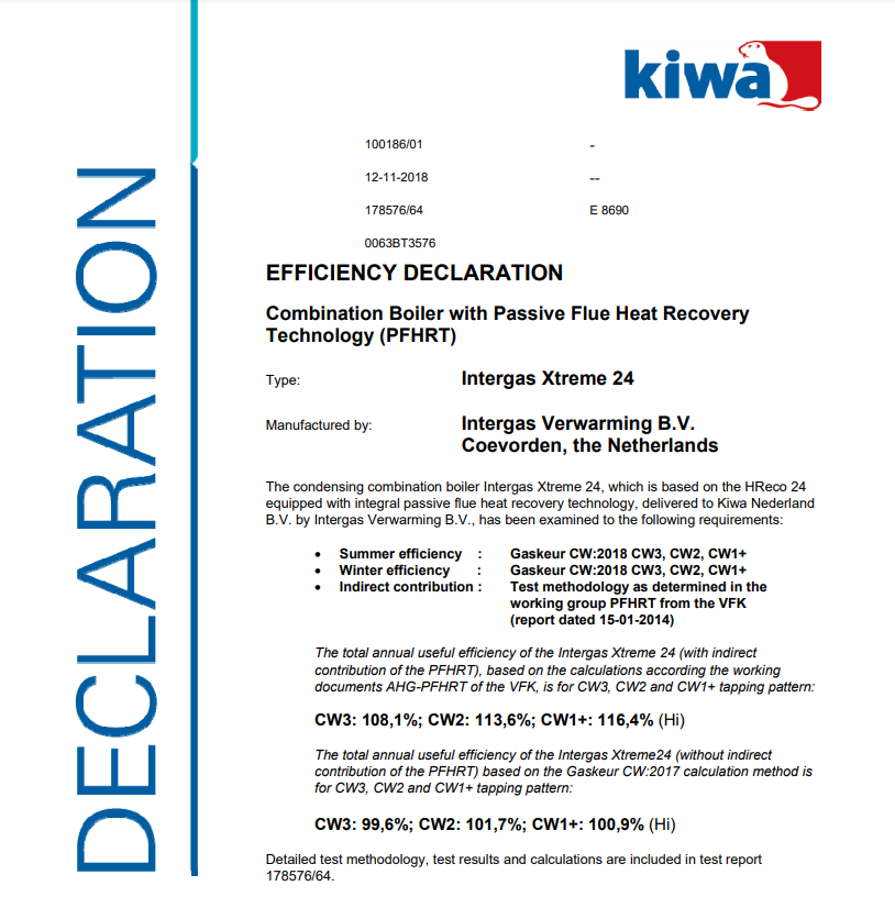 De Intergas Xtreme 24 is een CW3-klasse ketel. Met een capaciteit van circa 13 liter warm water (40°C) per minuut is dit de perfecte, zeer zuinige keuze voor: